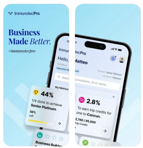 En prime, une fabuleuse application en temps réel: l’appli IMMUNOTECPRO, évidemment disponible sur Apple Store ou Google Store, pour vous aider à propulser votre entreprise vers le sommet.
